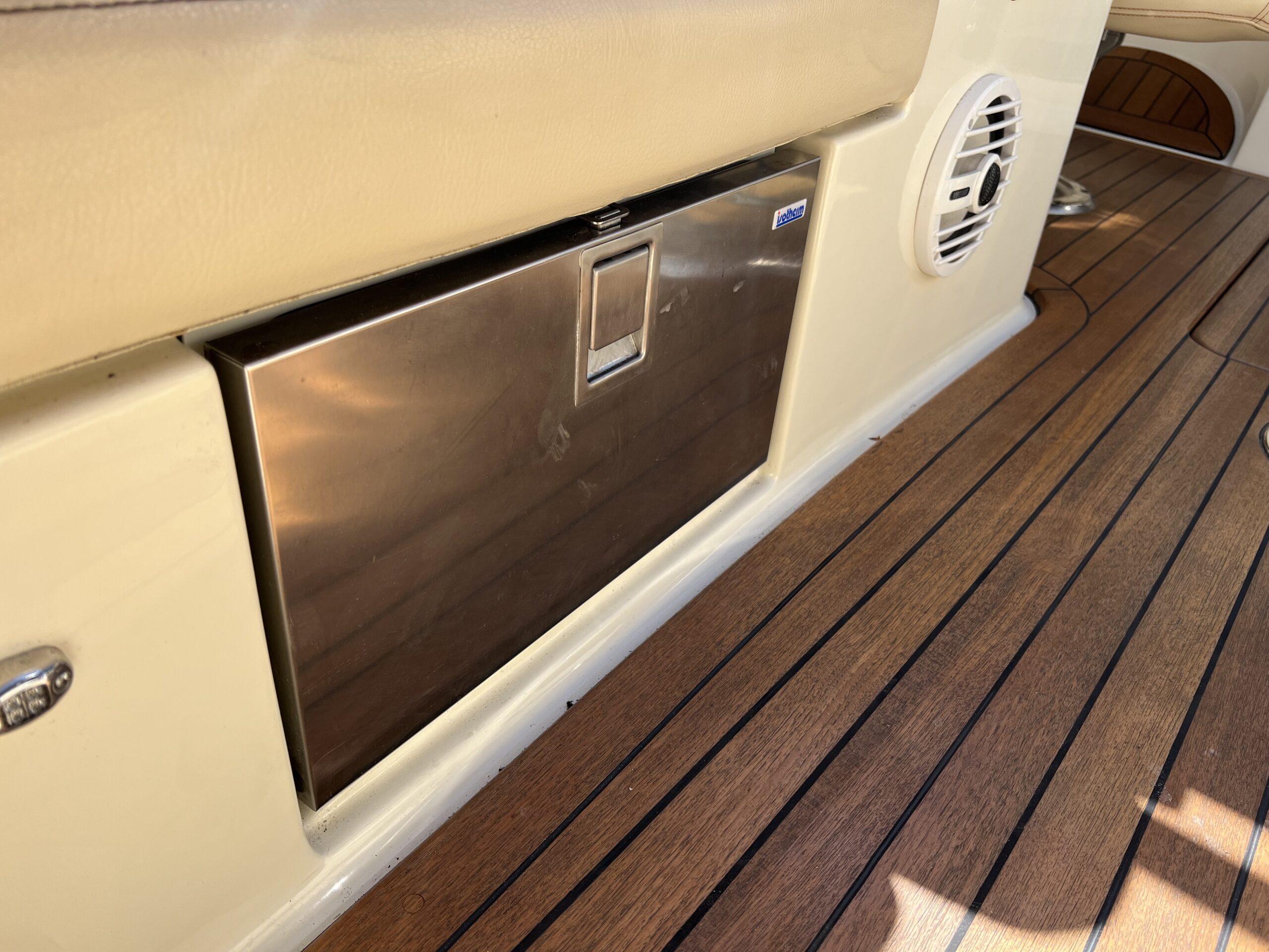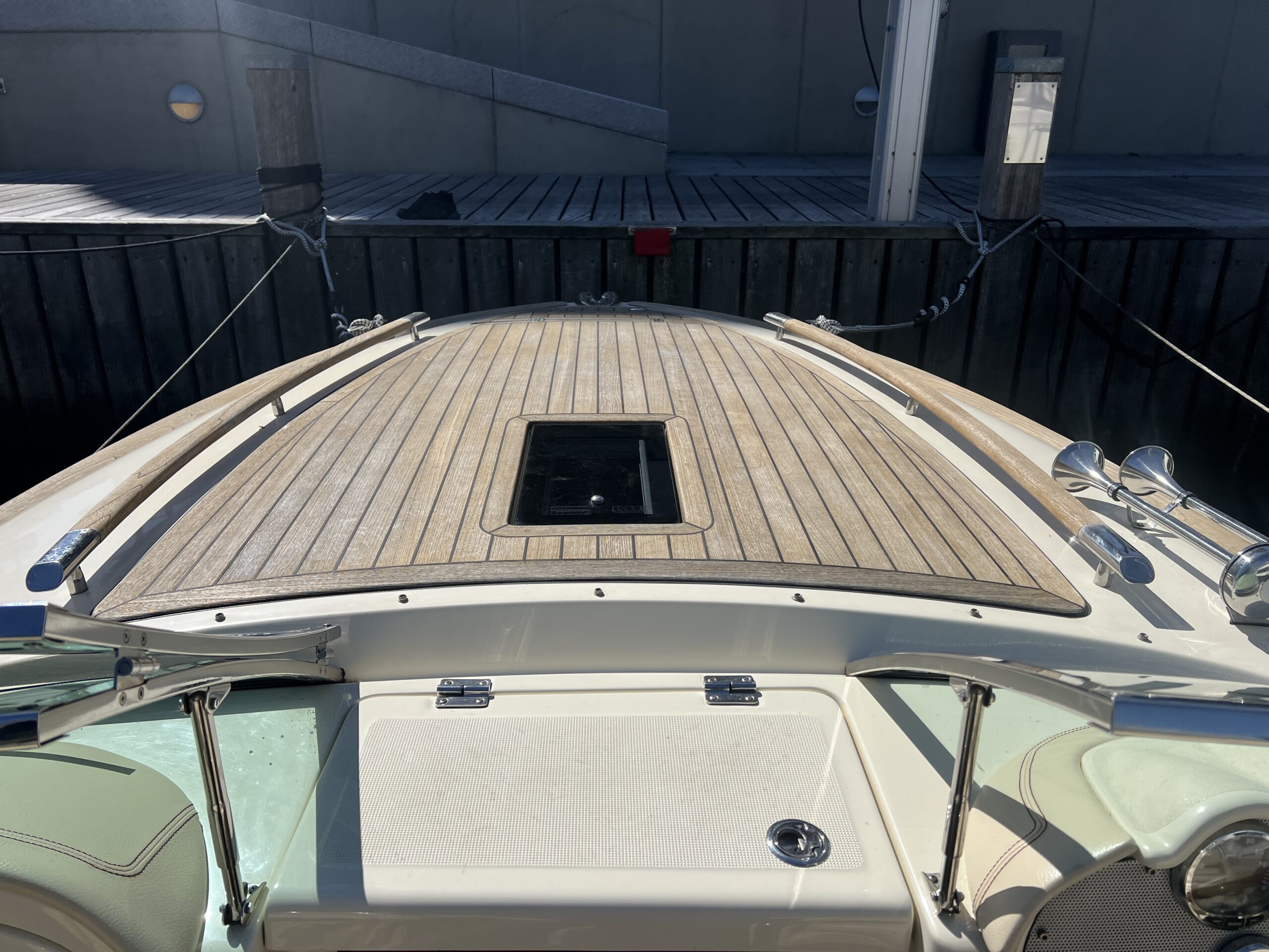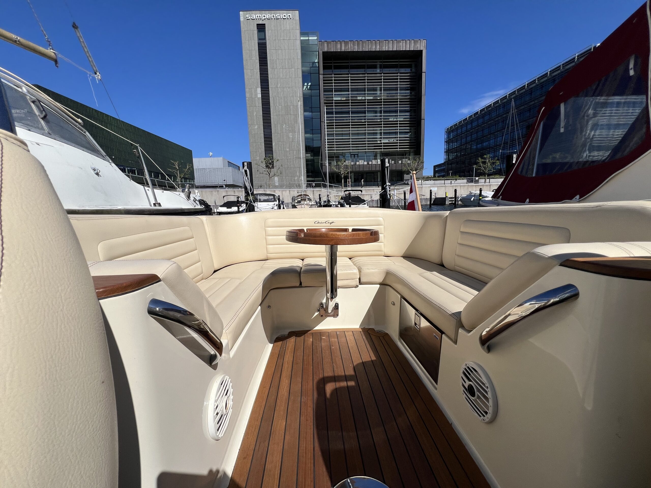 som en Chris Craft skal, stået opbevaret indendørs om vinteren. Plads til 2 sovende personer i kahytten. Stor U-Sofa i cockpit med plads til alle vennerne eller familien. Den