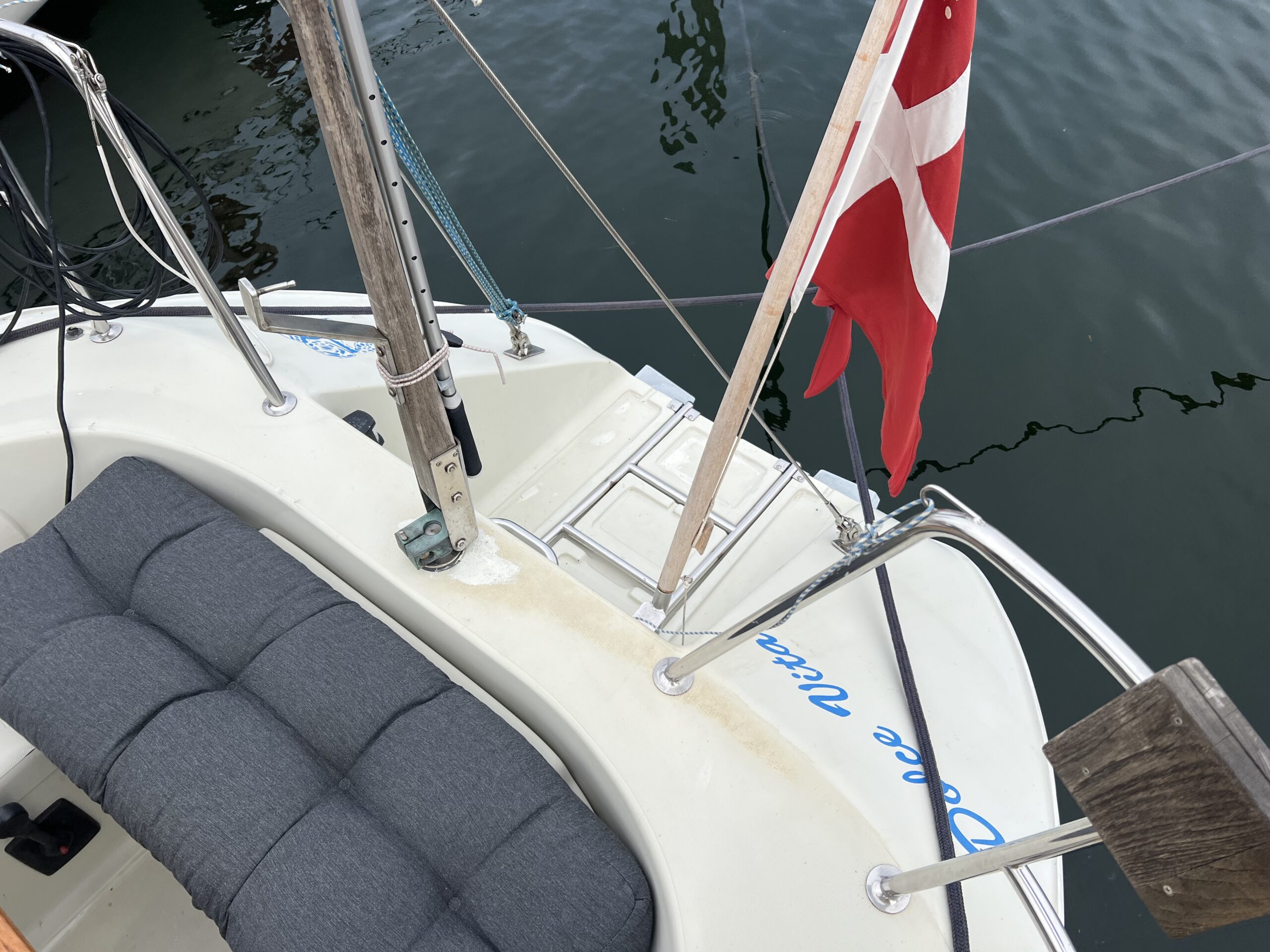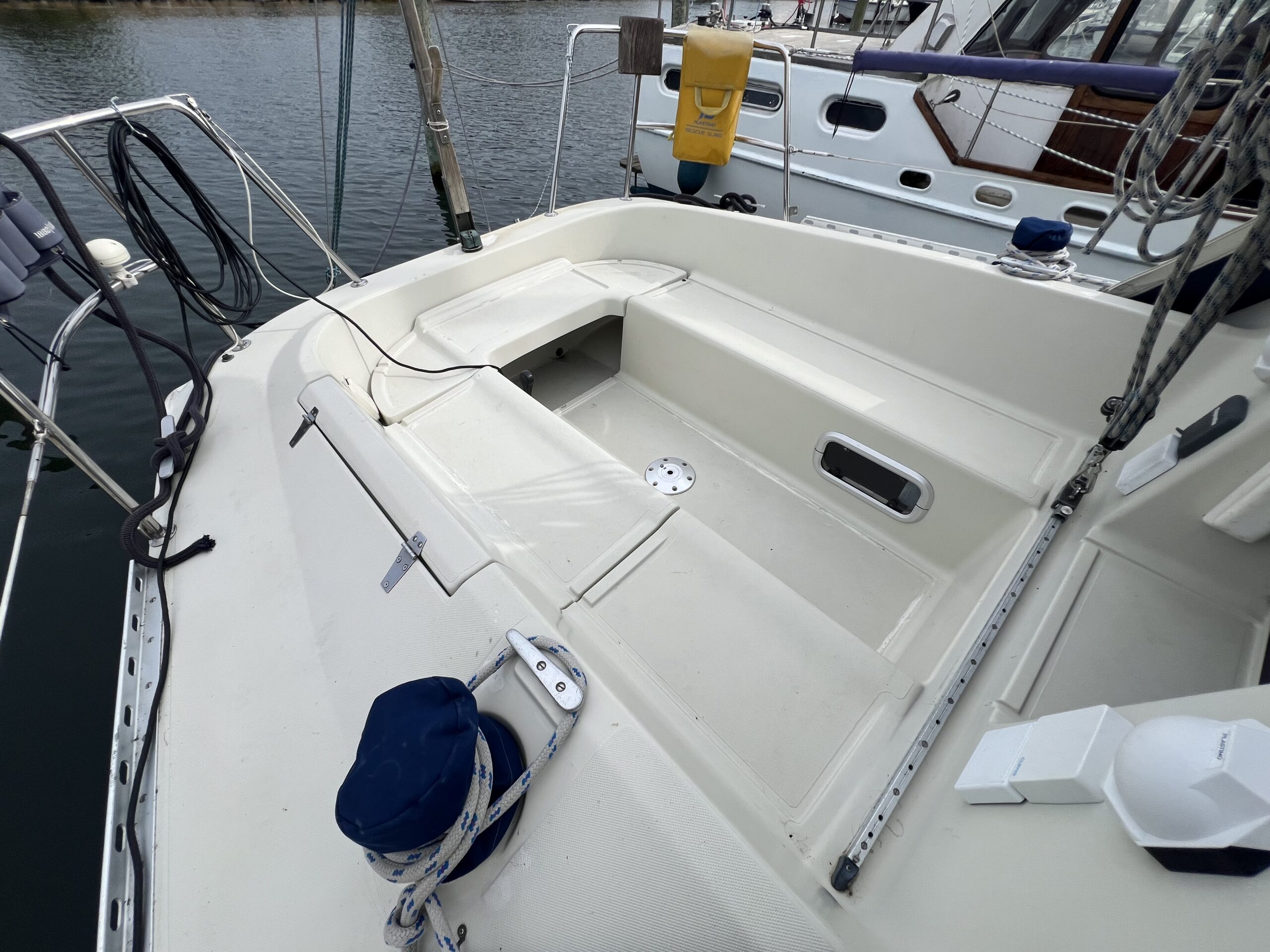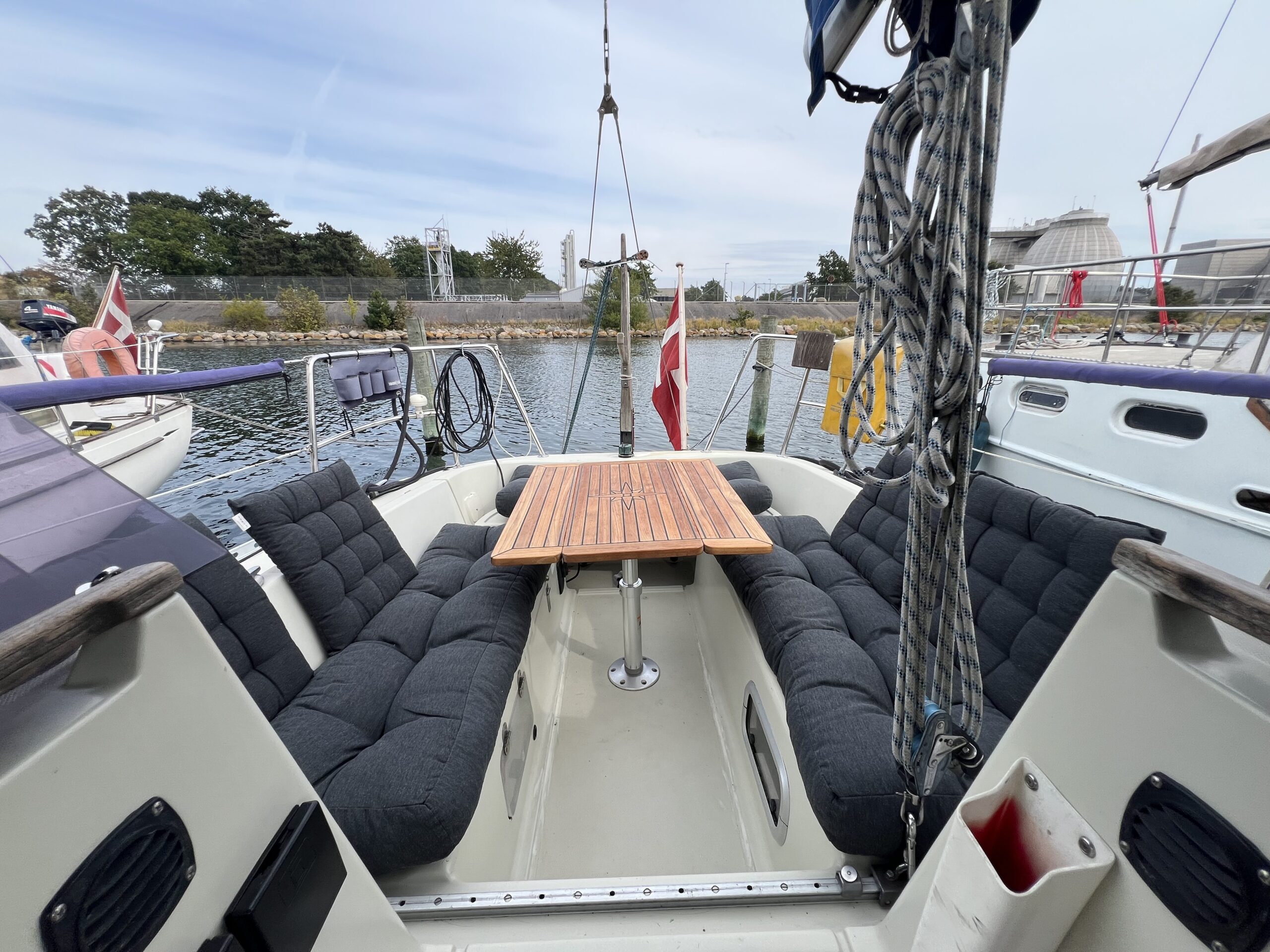 I cockpittet kan man nemt sidde seks personer rundt om det smukke teakbord, og den integrerede badeplatform giver nem adgang til og fra båden, når man ligger til anker. Alle fald er ført til cockpittet.